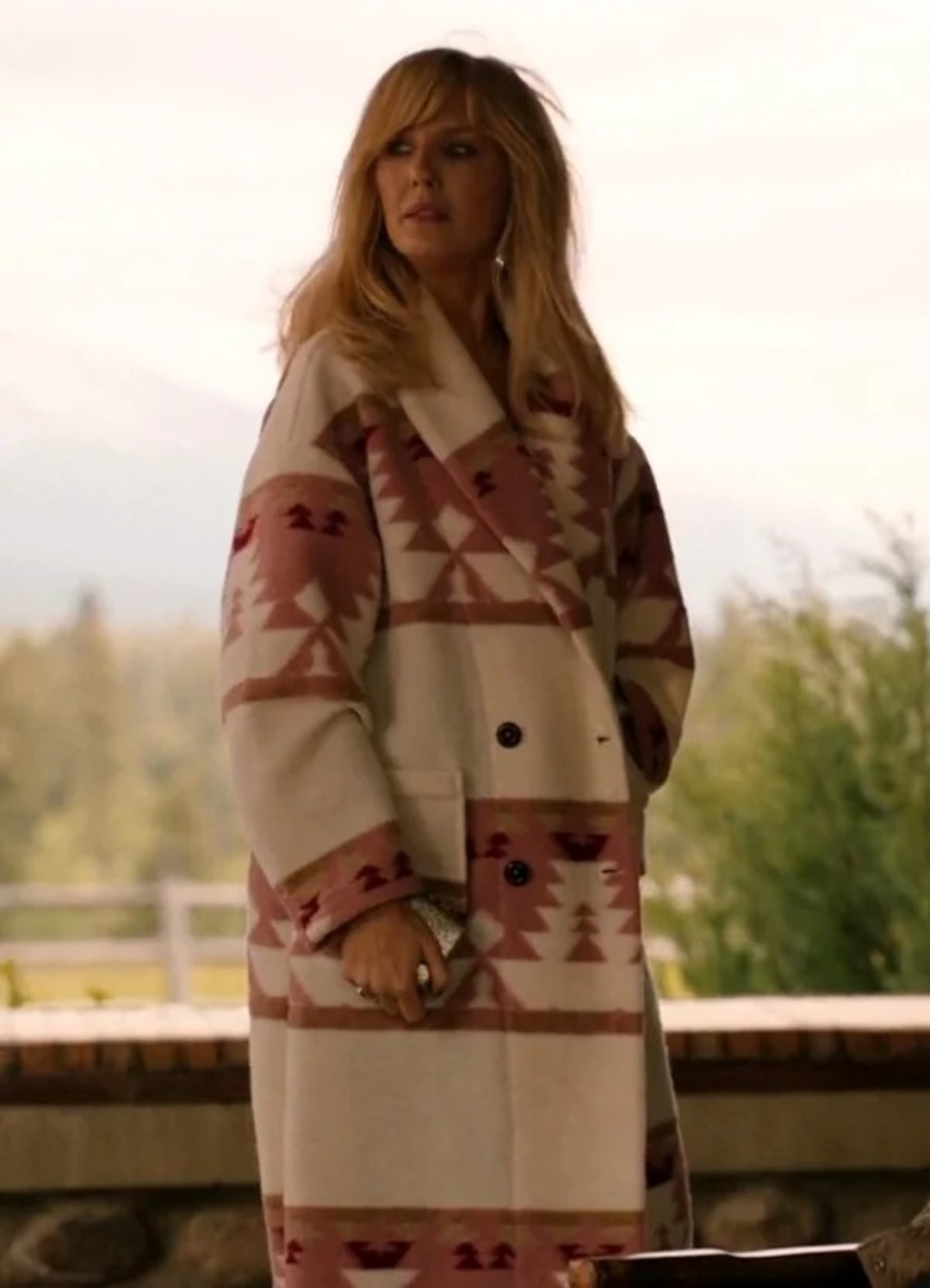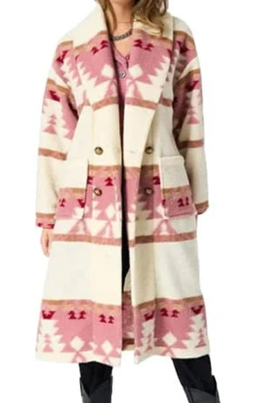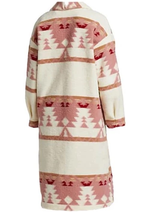 Step into the fierce and fashionable world of beth dutton with this standout pink printed coat from yellowstone Season 5, as worn by kelly reilly. Designed for bold women who love statement pieces, this kelly reilly yellowstone Western-inspired coat features a vibrant pink hue with unique tribal-style prints, tailored in a soft wool-blend fabric for comfort and warmth. Whether you’re channeling kelly reilly’s iconic TV style, looking for a head-turning winter coat, or gearing up for Yellowstone cosplay, this reilly kelly yellowstone jacket is a must-have. Available in all sizes, with fast and secure shipping across the USA. Elevate your outerwear game today.