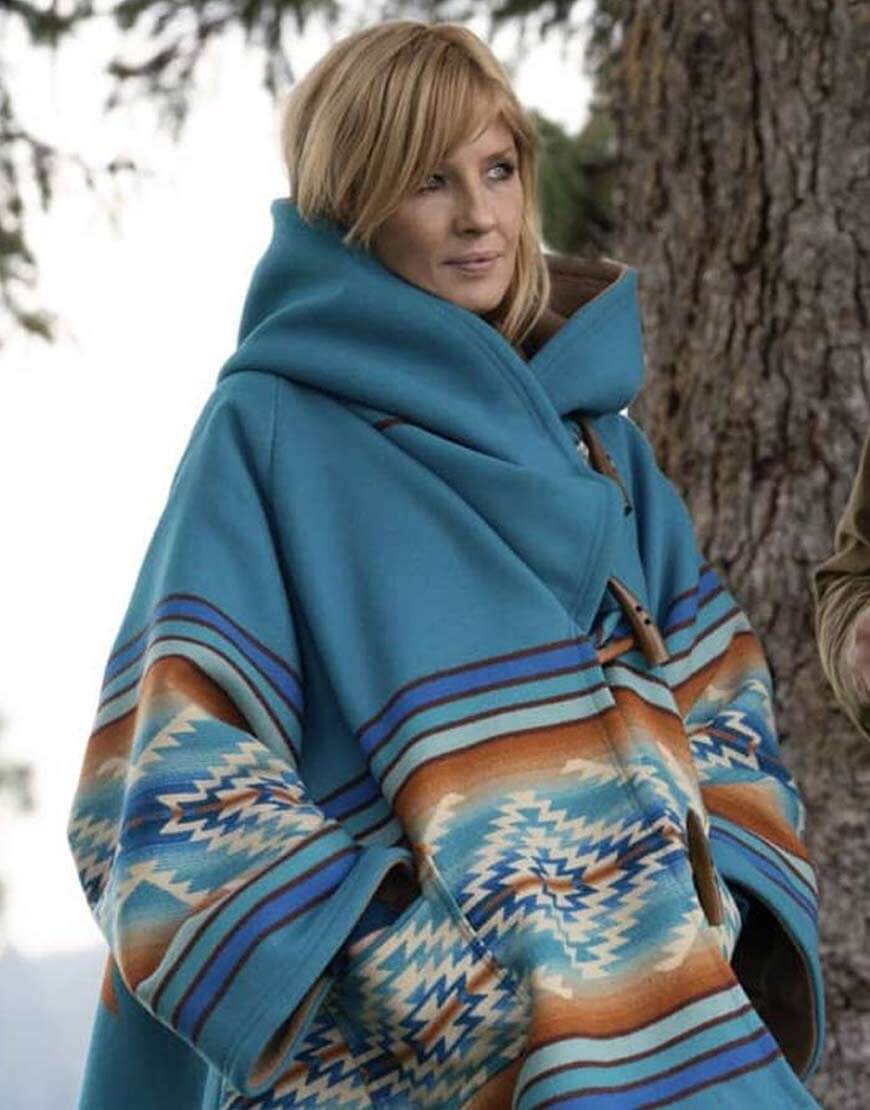 Kelly Reilly Yellowstone Beth Dutton Blue Hooded Jacket