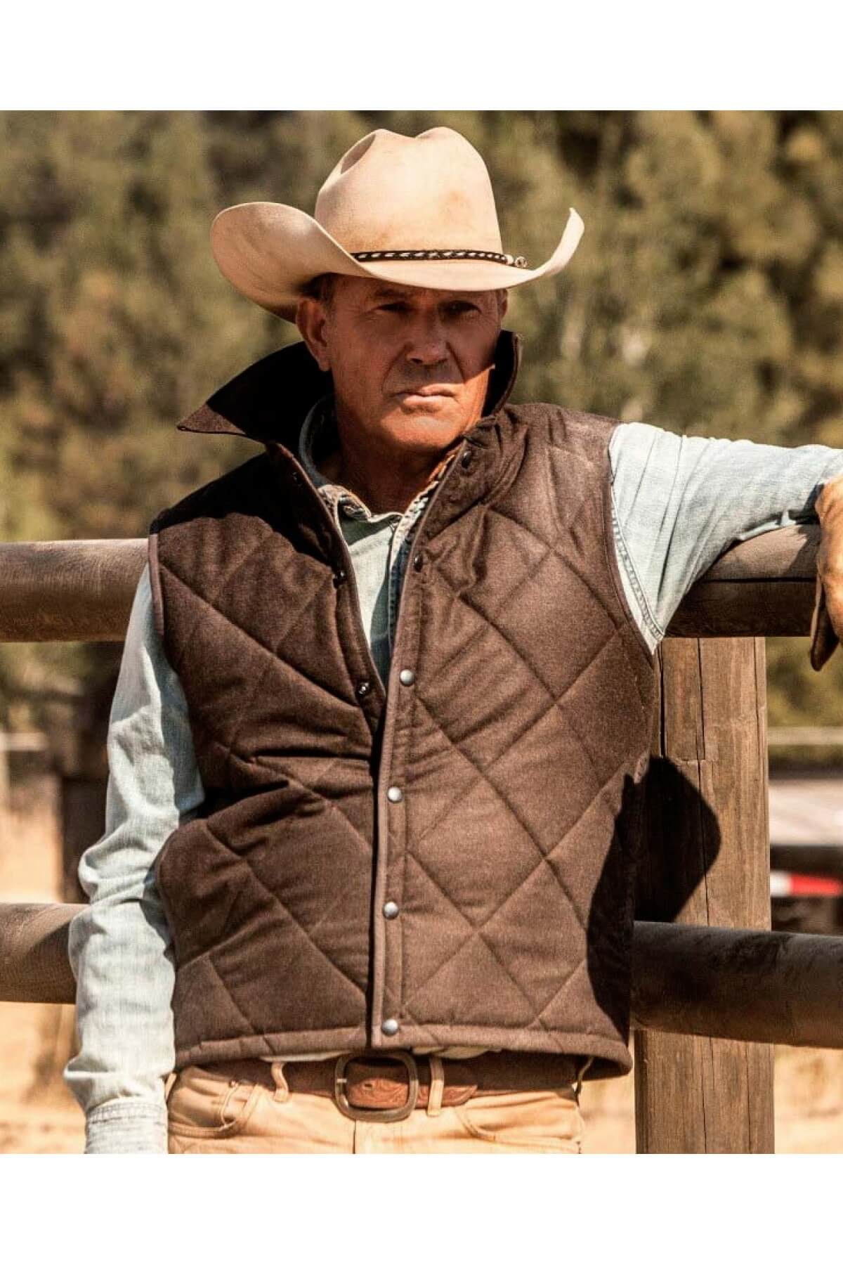John Dutton Vest is just enough to make your outdoor look eye catching as it is created with top notch quality of satin fabric. The shirt style collar, buttoned front closure and pockets stitched for your belongings featuring this smart casual apparel.