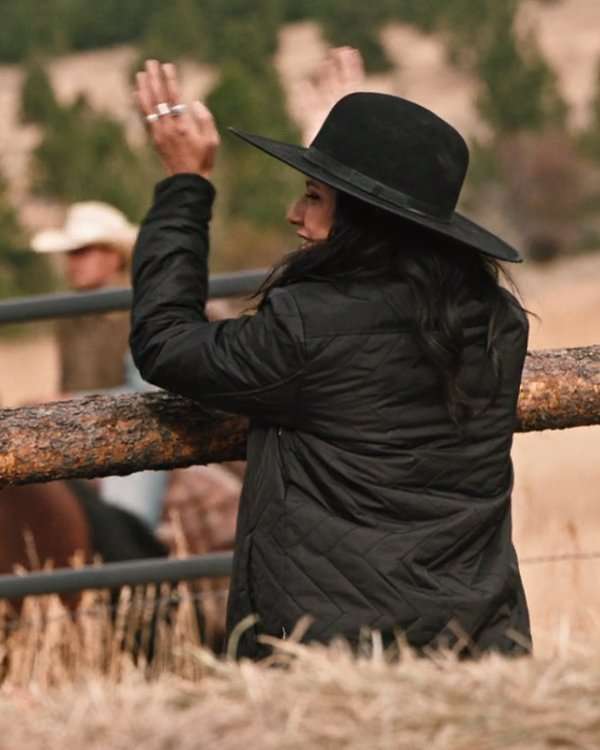 Now its fourth season is premiered on 7th November 2021. The series tells the story of the Dutton family, ruled by John Dutton, portrayed by Kevin Costner, the landlord of the largest ranch in the United States, and the story encompasses all the Dutton family drama and the conflicts over this land with the bordering Native Reservations and the constructors of the national park. Tanaya Beatty is portraying the character of Avery, a former bar dancer recruited by Rip as a ranch hand at Yellowstone. She is looking gorgeous in this Yellowstone S04 Tanaya Beatty Quilted Jacket. Come on, girls! You, too, can have the same jacket that Tanaya is wearing in this fourth season.