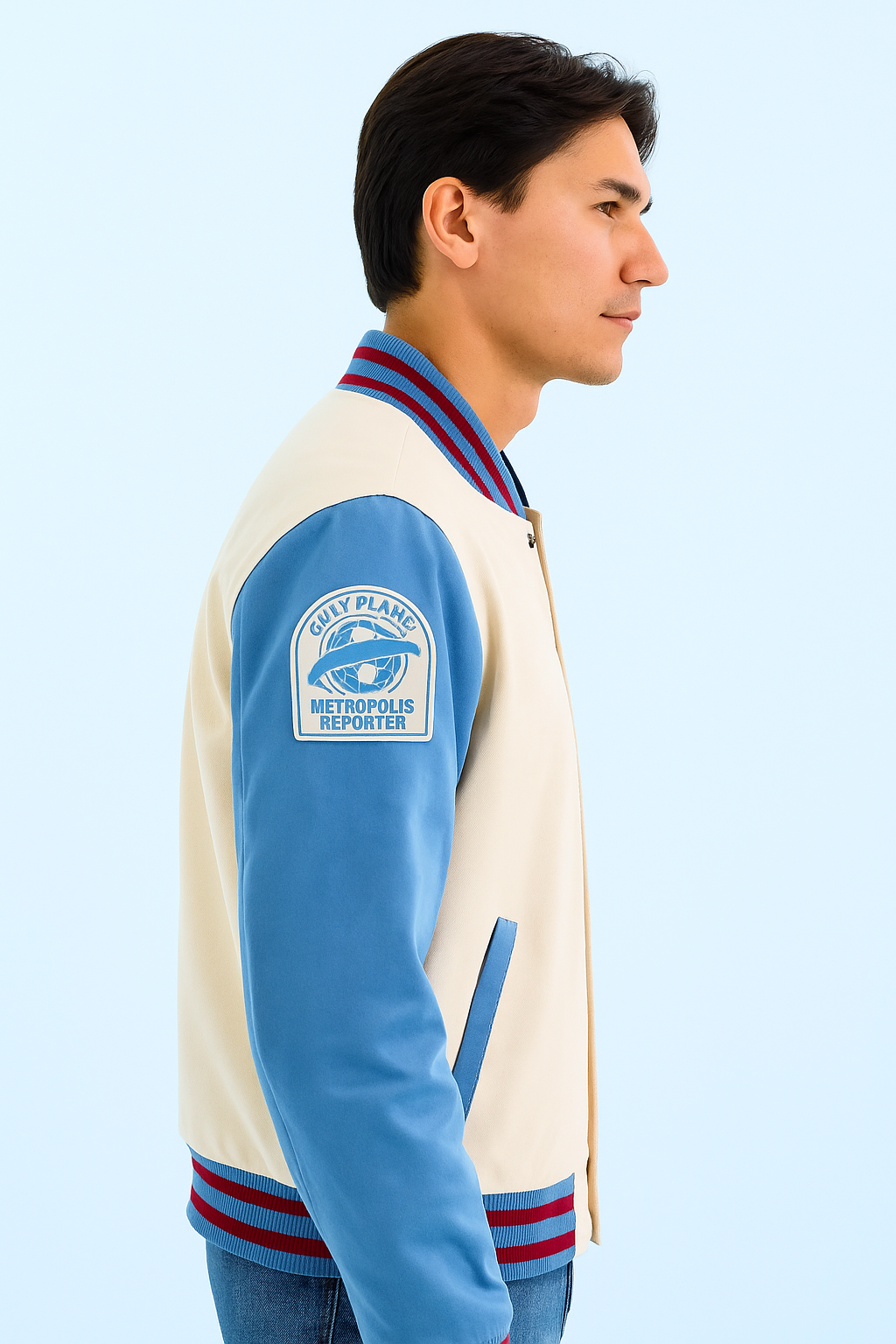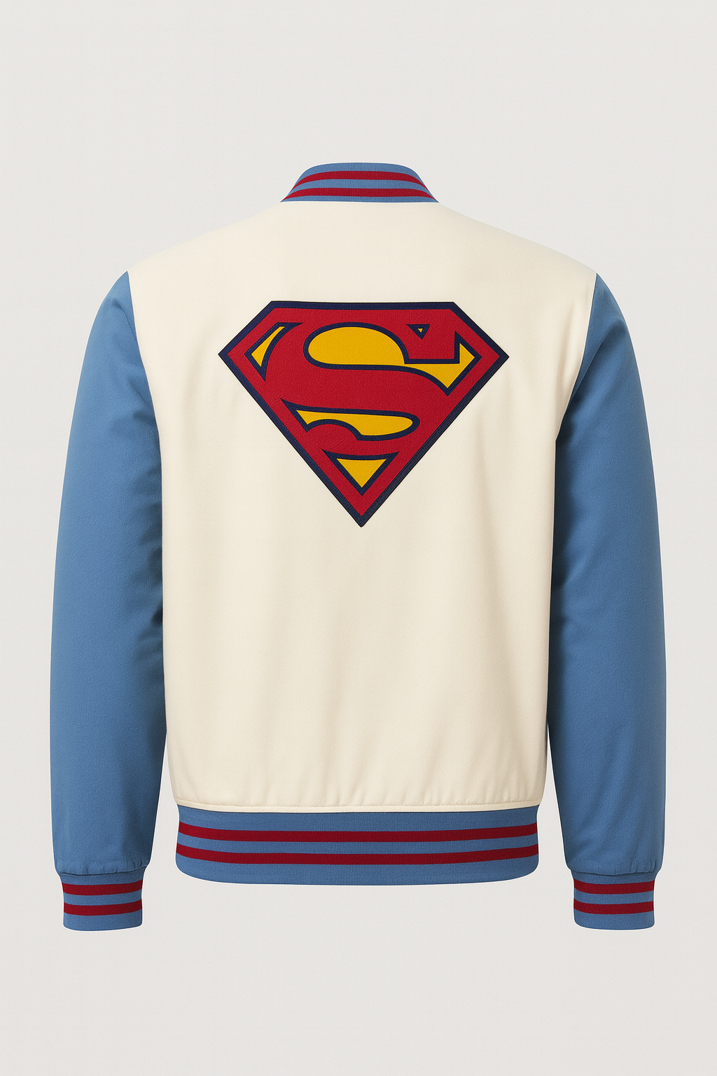 If you’re searching for a fashionable men’s varsity jacket, superhero jacket, or a premium DC Comics jacket, this classic white and blue Superman bomber jacket is the ultimate addition to your wardrobe.