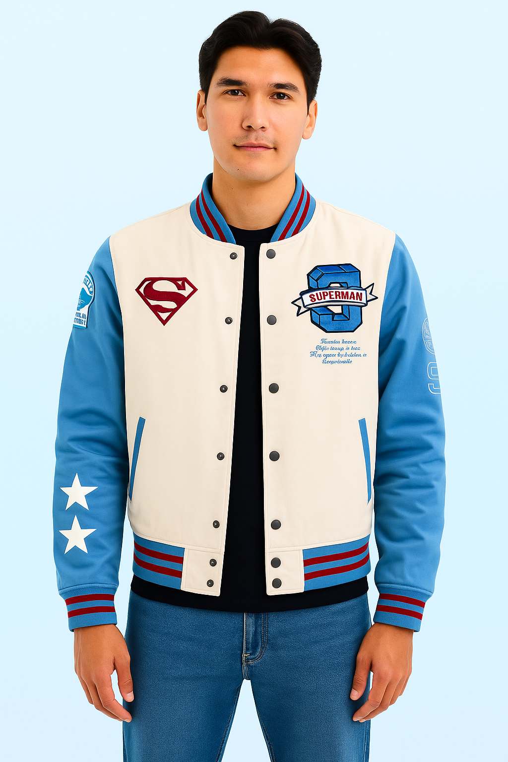 Upgrade your winter style with the DC Comics Superman Varsity Jacket in a classic white and blue letterman design. Inspired by the iconic superhero, this Superman varsity jacket is crafted for fans who love premium comfort, bold style, and high-quality winterwear. Designed with soft inner lining and durable outer fabric, it delivers warmth without compromising on style making it the perfect men’s winter jacket for everyday wear.