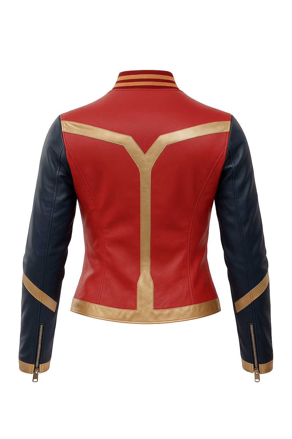 - Sleeve Detail: Gold double-chevron stripes + zipper cuffs